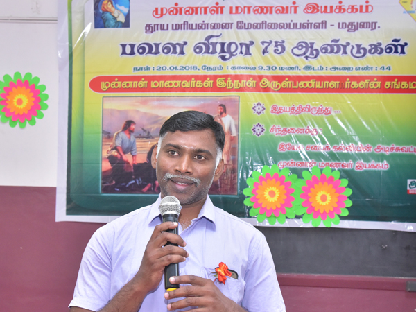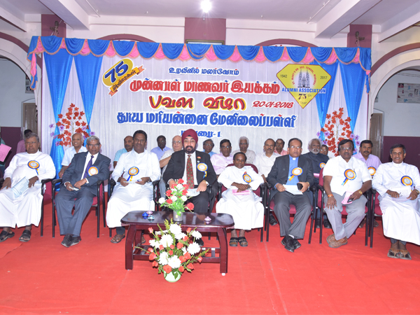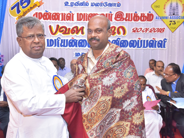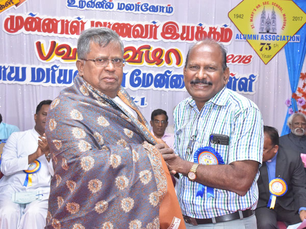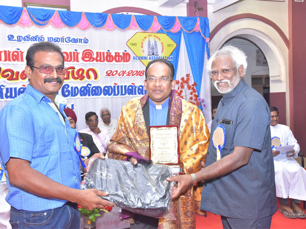To celebrate the platinum jubilee of the alumni association during 2017-18 various constructive programmes were organized. Rev.Fr.V.George s.j, the Director of the alumni association with his motivating spirit, strenuous efforts, ceaseless steps made elaborate arrangements and executed meticulously all the plans with his initiatives. So many alumni enrolled, took part and shared all their memories. Moreover, for the first time in the history of our association Rev.Fr.V.George, s.j collected a lot number of our alumni's addresses, documented and enlisted them through Email and internet.