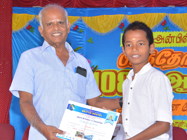 As an inmate, later as an Assistant Warden and now as the Director, I see very well that all along, the Britto Hostel has been serving its purpose of providing a supportive role to the school by way of producing great players and athletes. The students ever remember gratefully the overall formation given in the hostel. The hostel takes pride today as it has produced the former Vice-chancellor of Anna University, the Collectors of Coimbatore and Perambalur districts and other eminent people in various walks of life.
